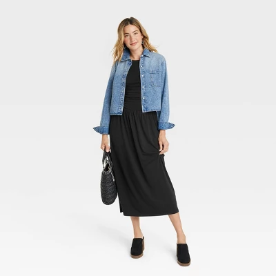 Dress up for weekend brunches or any other occasion with this Knit Midi Ruched Dress from Universal Thread™. This sleeveless dress tailored in a midi length features a simple round neckline and a flattering ruched construction for a dressy look. It’s made from lightweight jersey fabric with added spandex for a comfortable fit that moves with you, and the pullover style offers easy wear. Simply add the footwear of your choice to complete the chic look.